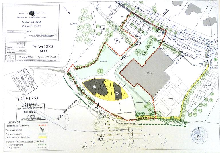 En 2001, la municipalité et l'association Nautisme en Odet retiennent le site de Créac'h Gwen pour accueillir la future base nautique, destinée à regrouper toutes les activités pratiquées à Quimper : canoë, voile, aviron, yole et plongée. L'opération, d'un montant de 2 410 000 euros, est cofinancée par la ville de Quimper, le conseil régional, le Centre national pour le développement du sport et le conseil général. Le permis de construire est signé le 23 août 2005, le chantier s'ouvre le 9 mai 2006 et l'équipement est inauguré le 16 mai 2007.