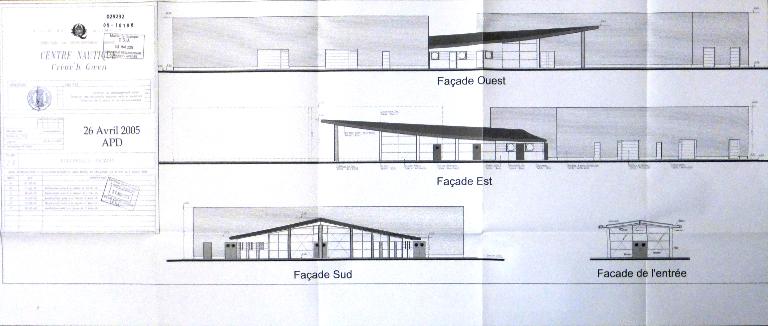 Le bâtiment principal, au nord-ouest, comprend trois éléments : une partie administrative, avec un accueil commun, deux salles pédagogiques et les bureaux des associations ; une partie humide, avec des vestiaires individuels et collectifs, les sanitaires et le local séchoir ; des locaux techniques pour le stockage du matériel voile et kayak. Un bâtiment indépendant, au sud-est, est dévolu à l'aviron.