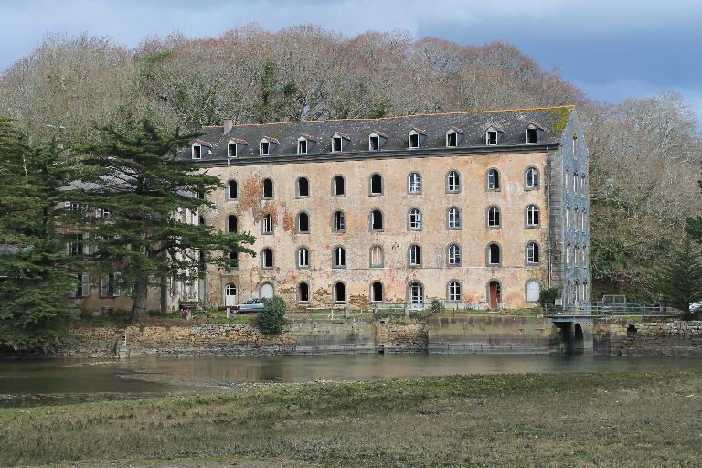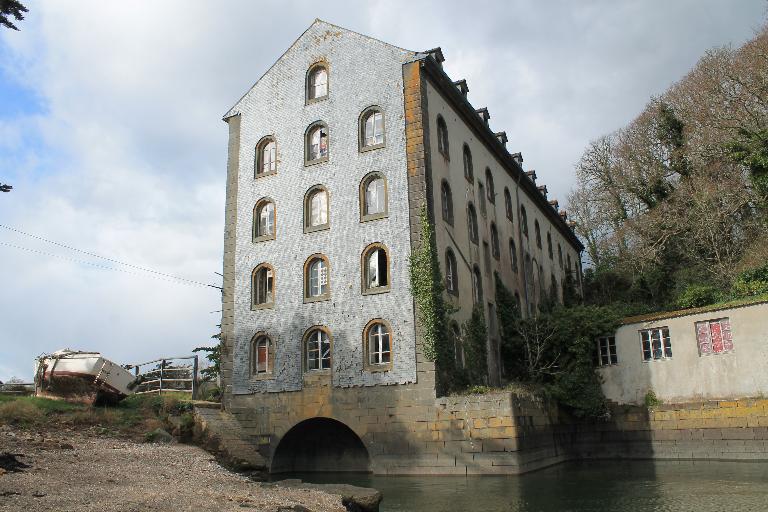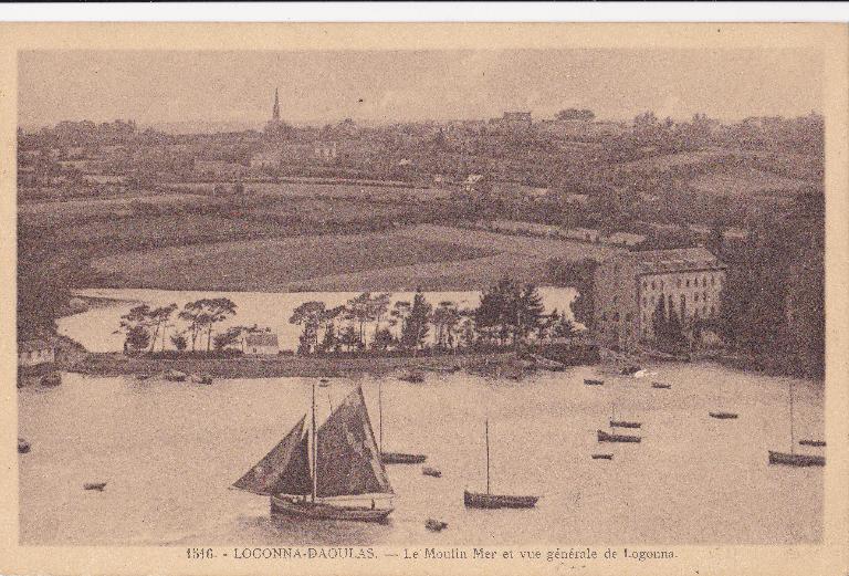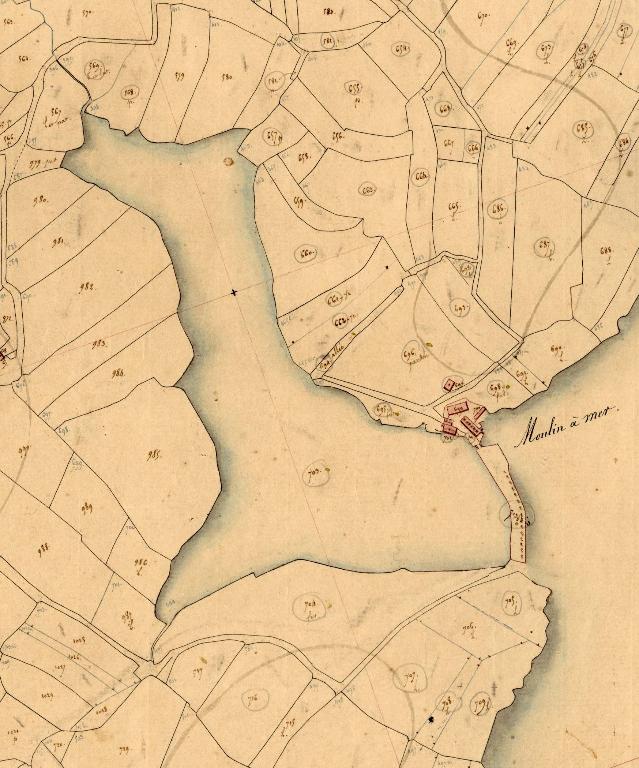 Le moulin à marée du Moulin mer était une des propriétés de la famille Rosmorduc avant la Révolution française. La description qui en est faite, avant sa vente comme bien national en 1798, indique un moulin en mauvais état : "effectivement de nulle valeur, sans toiture, charpente, fenêtres, portes et sans espèces d'ustensiles, que la maçonnerie [était] lézardée et prête à crouler" (1793-1794). Au début du 19e siècle il appartient à M. Labiche, puis après son décès en 1824, ses petits enfants, messieurs Halligon, Samson et Vignoboul font élevé "à frais communs plusieurs bâtiments pour améliorer et étendre leur exploitation", soit un moulin à vent, un grand magasin à blé en face de la cale de débarquement, une grange, une écurie, un jardin, un verger, un magasin, un hangar, une maison et le moulin (1830-1840). Moulins à céréales, le moulin à marée et le moulin à vent font travailler 6 ouvriers. En 1850, après des transformations, le moulin devient minoterie et son activité est quasi industrielle.