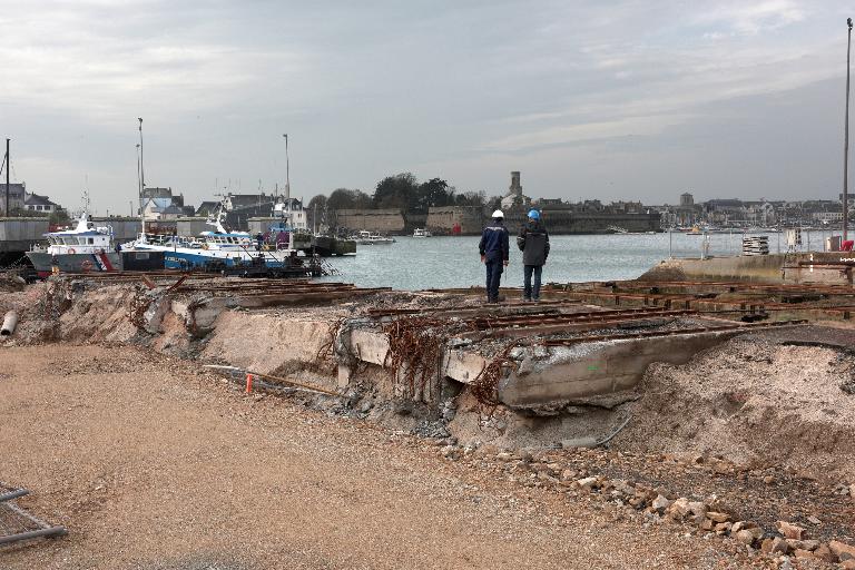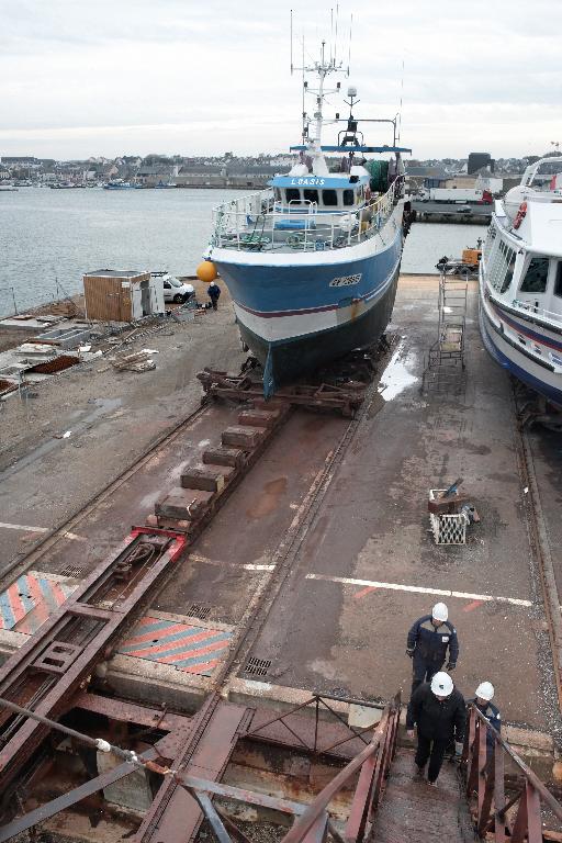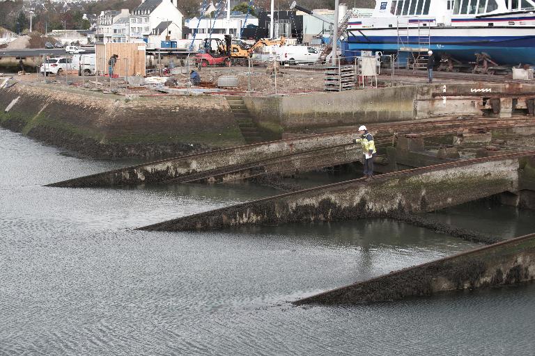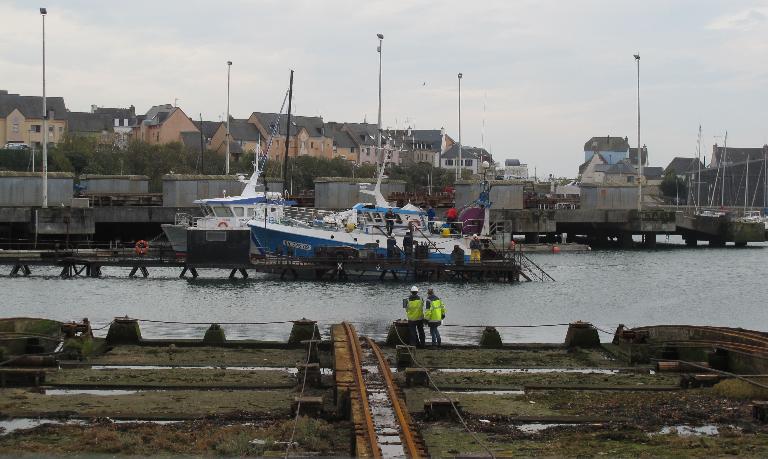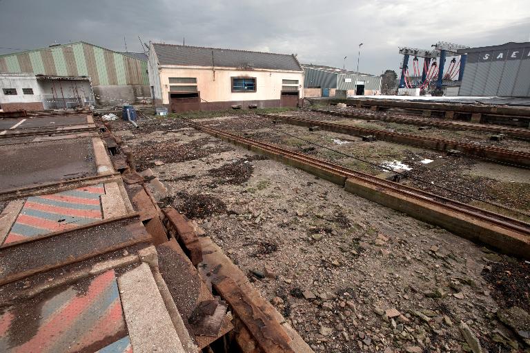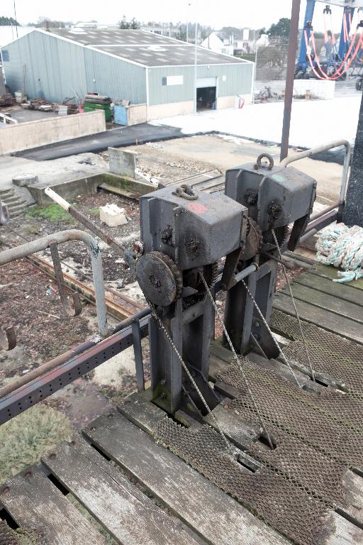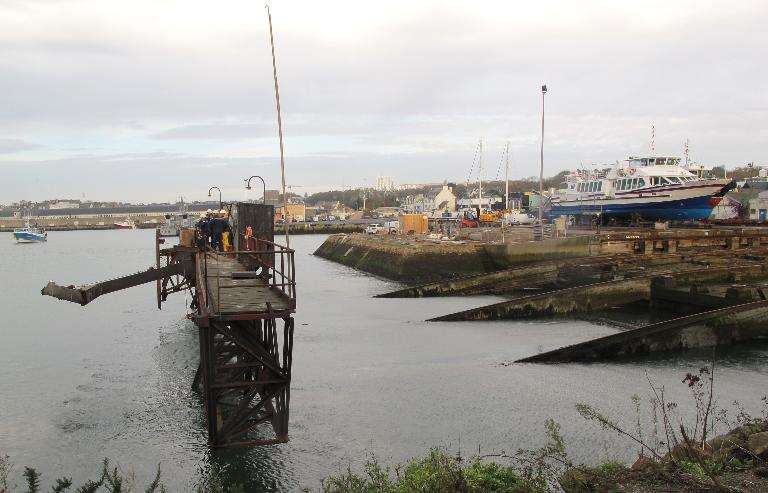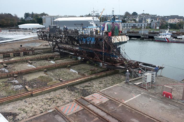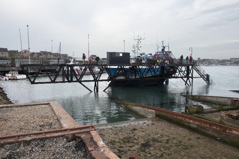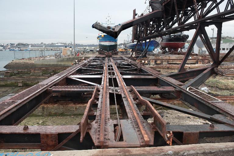 Infrastructure construite en 1956 ; le mécanisme de traction et levage a été réalisé par l'entreprise des anciens établissements Joseph Paris de Nantes. Déconstruit à la fin de l'année 2016, il est remplacé par un élévateur à sangles permettant la mise à l'eau ou mise au sec de navires plus grands et de différents types (quillards, voiliers).