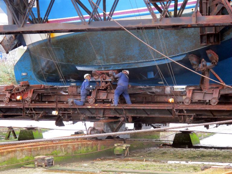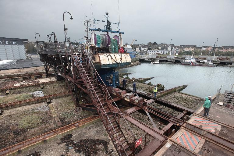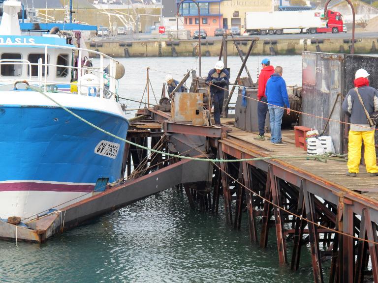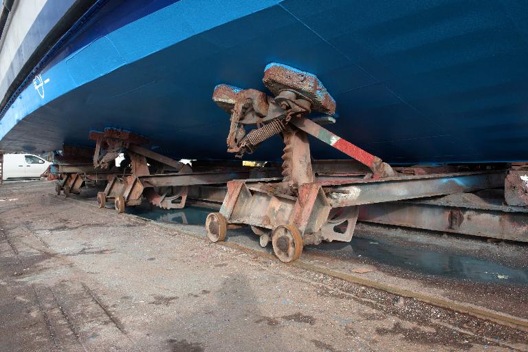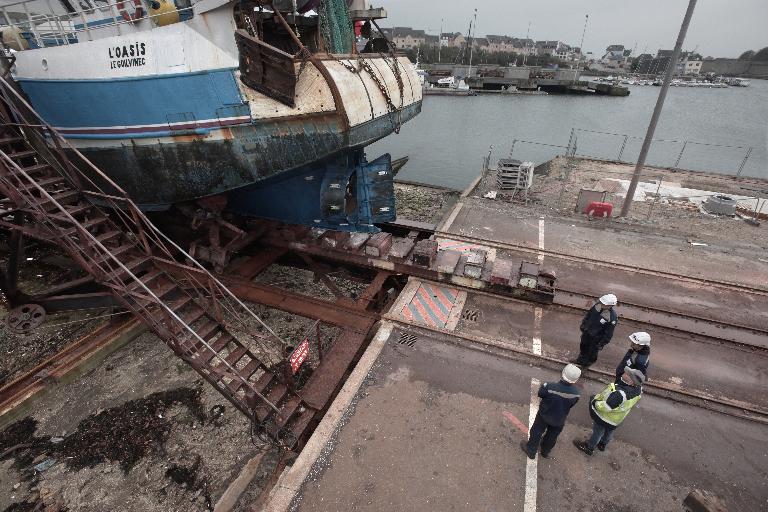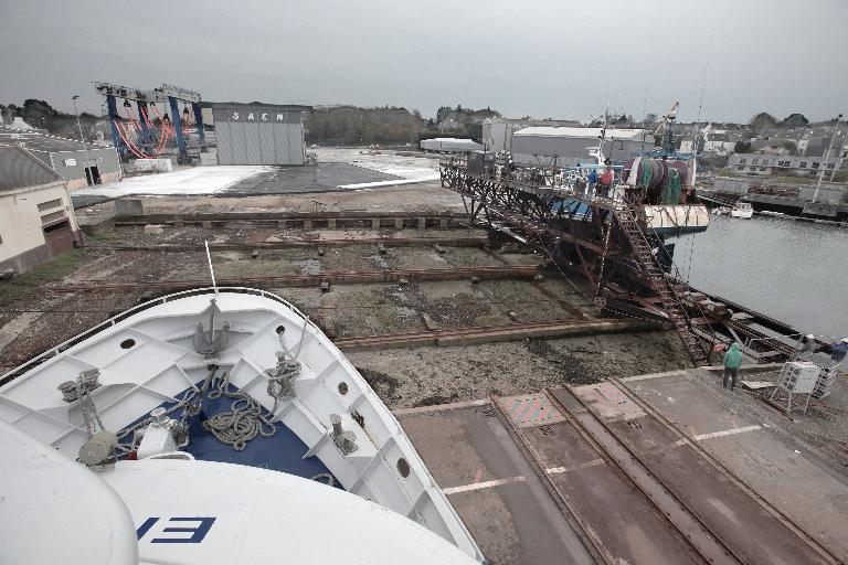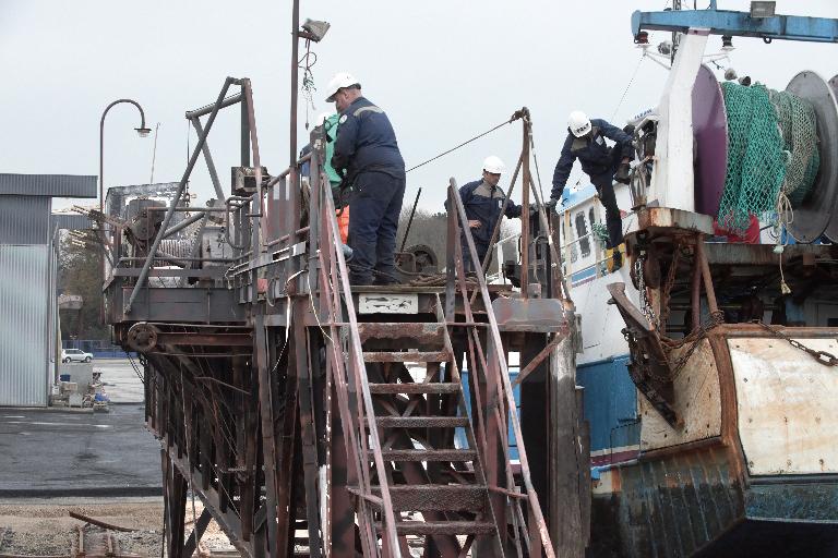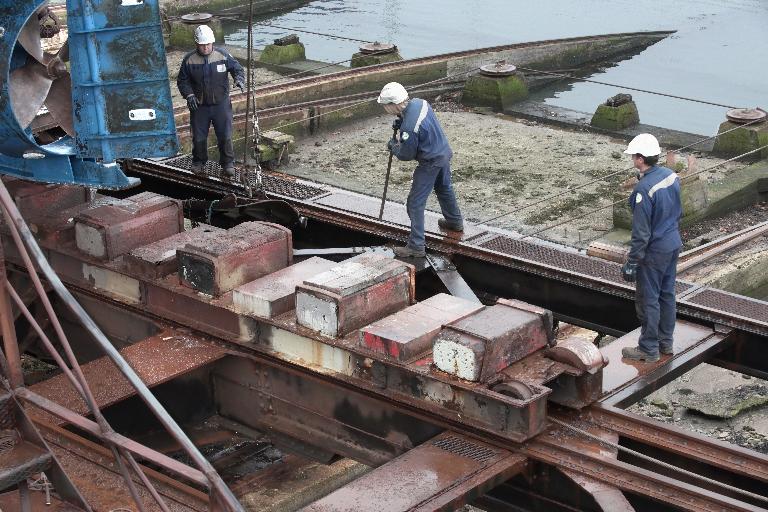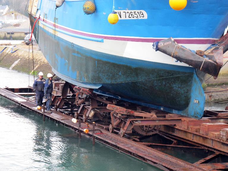 Infrastructure construite en 1956 ; le mécanisme de traction et levage a été réalisé par l'entreprise des anciens établissements Joseph Paris de Nantes. Déconstruit à la fin de l'année 2016, il est remplacé par un élévateur à sangles permettant la mise à l'eau ou mise au sec de navires plus grands et de différents types (quillards, voiliers).