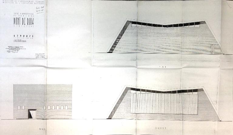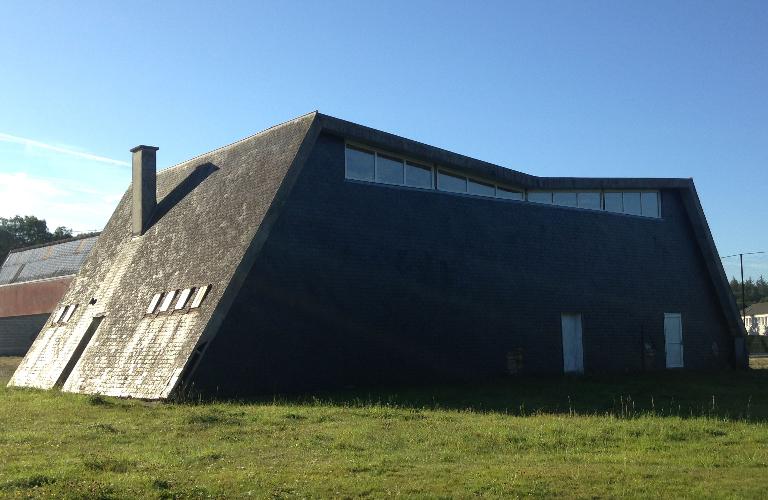 Exemple de la petite série de salles de sports conçues par Yves Guillou au début des années 1960 pour des collèges d'enseignement technique.
