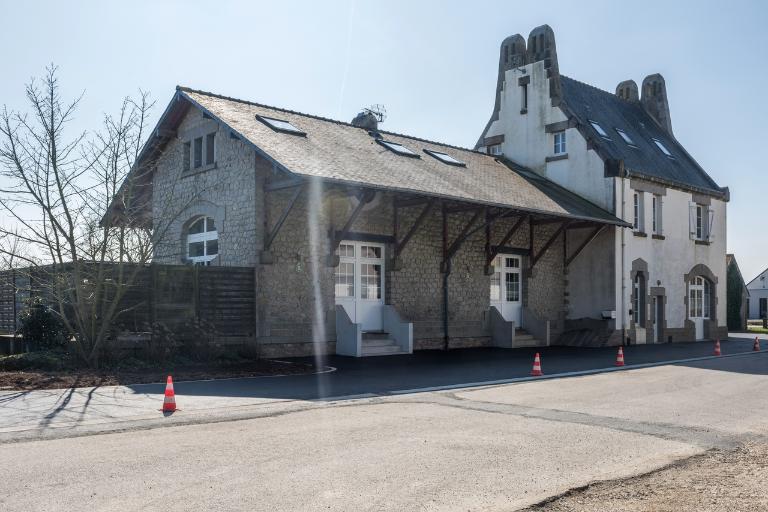 La gare forme un alignement composé d'un bâtiment principal à étage (logement du chef de gare, salle des voyageurs) accolé à deux autres bâtiments en rez-de-chaussée : à l'ouest, un bureau ; à l'est, une double halle à marchandises à toit débordant. Le petit bâtiment qui abrite la lampisterie et les toilettes est établie à quelques mètres à l'ouest, très remanié. Le style architectural est inspiré du mouvement régionaliste auquel se mêle des accents Art nouveau.