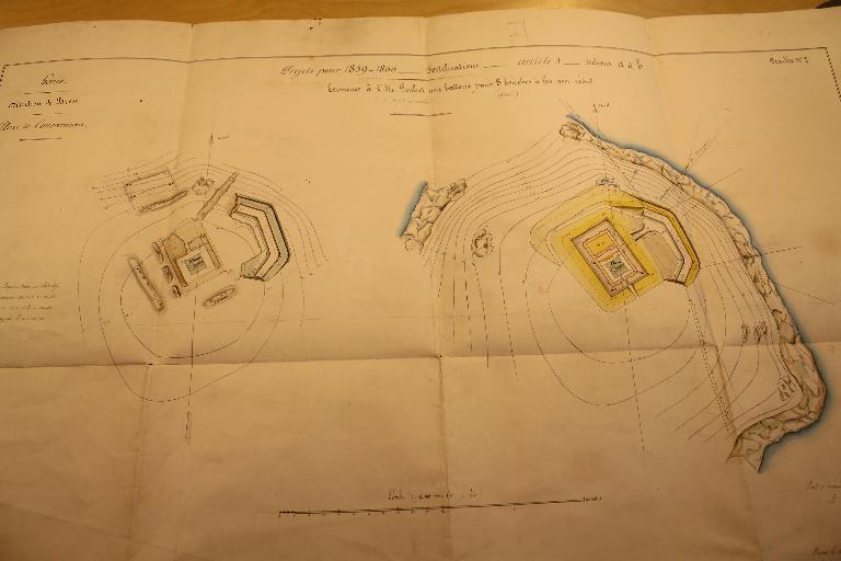 • Service historique de la Défense, département Armée de Terre, Vincennes. Archives de l'Artillerie ; Sous-série 3 W, Opérations militaires : 3 W 32, Documents concernant le 3e arrondissement maritime (Lorient). Projet d'armement des côtes de la France, de la Corse et des îles. Titre III : Projet d'armement des côtes du 3e arrondissement maritime (Lorient), 1841-1843.
