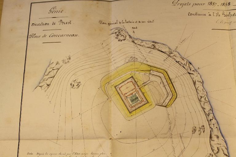 • Service historique de la Défense, département Armée de Terre, Vincennes. Archives du Génie ; Article 12, Avis du Comité : 1 VK 584, Registre des avis du Comité des fortifications sur le crédit général pour la défense des côtes, 1858-1867. Séance du 25 février 1858, Place de Concarneau.