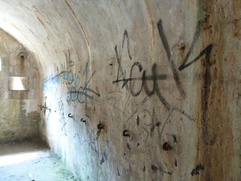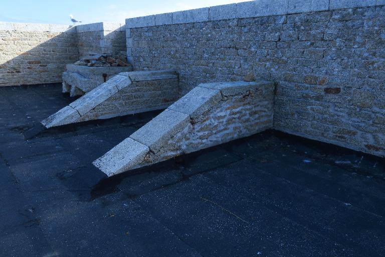 Les planchers en bois des magasins à poudre ont disparu. Le sol de la cuisine est dallé de pierre, ceux des autres pièces ont conservé leur revêtement en asphalte. Les matériaux mis en œuvre pour la maçonnerie sont le granite local pour les moellons et le granite importé du continent pour les pierres de taille.