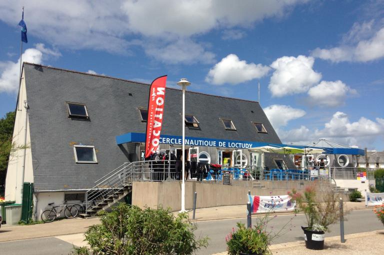 Créé en 1961, le cercle nautique de Loctudy connaît rapidement une fréquentation qui l'amène à construire un bâtiment. Le projet de l'architecte quimpérois J. Queinnec bénéficie d'un arrêté d'approbation technique le 6 novembre 1964 et d'une subvention de 50 000 F au taux de 37,03% le 8 juin 1965. Le certificat de conformité est délivré le 22 mai 1969, les travaux ayant été menés à bien pour un montant de 165 467,16 F. Trente ans plus tard, F. Revol rénove le bâtiment et le complète au nord-est par une extension décagonale formant vigie (permis de construire du 2 juillet 1999, modifié le 2 juillet 2003). Enfin, en 2015, B. L'Ollivier réalise sur la façade ouest un nouvel agrandissement qui est inauguré le 2 juillet 2016.