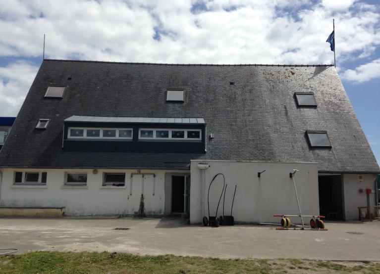 Le bâtiment achevé en 1969 comprend deux étages et mesure environ 29 m x 14 m. « Deux grandes salles sont prévues, l’une en rez-de-chaussée pouvant recevoir quelques bateaux l’hiver, servant d’atelier et voilerie l’été, l’autre en haut utilisée comme salle de cours. Deux pièces sont destinées à l’hébergement de quelques cadres. Chaque étage comprend un équipement sanitaire modeste, utilisable surtout par les moniteurs ou par les stagiaires en cours théoriques, car le CNLK, recevant uniquement des externes, ceux-ci résidant à Loctudy, il n’a pas semblé nécessaire de prévoir des vestiaires ni des douches pour eux. Les autres pièces comprennent un local pour petit matériel, un office permettant éventuellement aux moniteurs de préparer leurs repas et un bureau. » En 2000 sont réalisées la création d'un accueil et de nouvelles salles d'embarquement et d'animation pour les jeunes enfants, d'un ensemble de rampes pour l'accès des personnes à mobilité réduite et pour offrir un espace d'observation des courses de bateaux, et la rénovation des équipements existants. Les travaux inaugurés en 2016 concernent la réfection des vestiaires et sanitaires situés au rez-de-chaussée et, à l’étage, la création d'une nouvelle terrasse au nord-ouest, communiquant avec le club-house, lui aussi réaménagé.