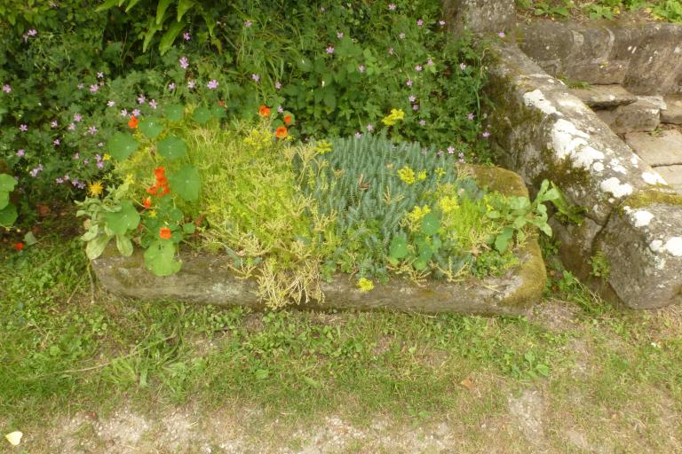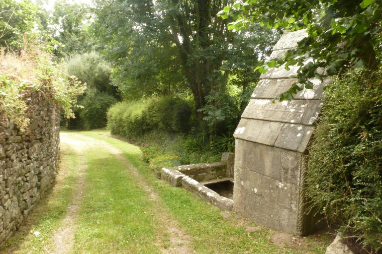 Notons qu’au moment sa construction, une stèle gauloise christianisée a été intégrée à l’angle sud-ouest de son bassin.