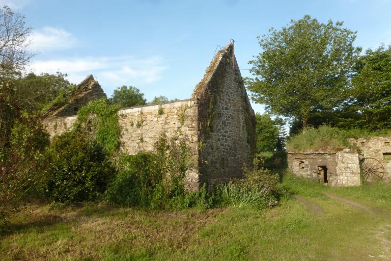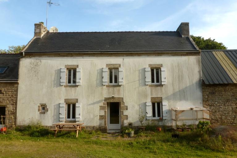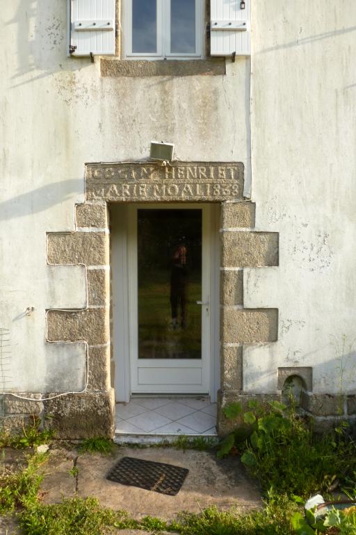 La maison à l’est est plus ancienne au vu de ses éléments architecturaux et porte les dates de 1814 et 1831. La maison de l’ouest porte la date de 1838 mais semble avoir été remaniée dans la seconde moitié du 19e siècle, notamment l’étage. La cheminée de celle-ci présente une niche créée avec des pierres réemployées provenant d’une ancienne porte en anse de panier (vestiges d’une habitation antérieure ?). Notons que le bâtisseur, Henri Colin, dont le nom surmonte la porte d’entrée a été maire de Plouhinec entre 1840 et 1870.