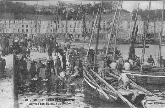 Le 3e bassin est en cours de construction en 1865. Le remblais constitutif du 3e éperon est à peine ébauché tandis que la maçonnerie du 2e éperon est en cours de mise en œuvre. Les bassins 1 et 2 quant à eux sont déjà en activité. Dès sa mise en fonction, le bassin 3 est dédié aux coquilliers et autres bateaux de pêche de la rade. La cale du quai Ouest portera longtemps les dénominations de cale des pêcheurs ou des mareyeurs. Le nouveau port de Brest est au cours du 4e quart 19e siècle un port de cabotage qui s'inscrit dans le réseau des ports de la rade.