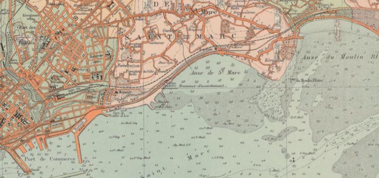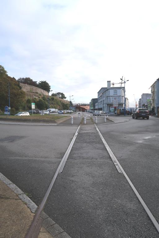 Le plan général du port de Brest, joint au décret du 17 mars 1869, positionne les digues, les bassins et les axes du chemin de fer desservant le port de commerce (dénommé chemin de fer maritime). Une connexion est prévue entre Porstrein et le port militaire de la Penfeld par un contournement nord du château. Le 29/12/1894, la Compagnie de L'Ouest obtient la concession des voies ferrées portuaires ; compagnie remplacée en 1909 par le réseau des chemins de fer de l'Etat. La jonction avec la ligne Paris-Brest s'effectuait à la gare du Rody (moulin-blanc).