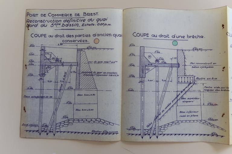 A la fin des années 1860, les terre-pleins à proximité des bassins sont mis à disposition. Habitations, commerces, entrepôts, usines s'y implantent, d'abord en structures légères (baraques) puis en dur. A proximité du 5e bassin, une parcelle est attribuée au service des câbles sous-marins (1879) : le centre de pose et de réparation des câbles ayant besoin de la proximité avec la mer, seule façon de transporter les câbles de section et de poids importants. A la fin du 19e et jusqu'à la dernière guerre, les Moulins Brestois se situent quai Considère, non loin de la centrale électrique, de la société des houilles brestoises et d'une briqueterie. Les Américains arrivés en 1917 ont doté le port de Brest d'entrepôts (6 000 m² de stockage) qui ont servi jusqu'en 1925. Après la Seconde Guerre mondiale, l'activité du quai Nord du 5e bassin est essentiellement dévolue au charbon. La création d'appontement et de ducs d'albe et l'installation de grues (à l'instar de la grue Paindavoine) au 5e bassin permettent au port de commerce de Brest de reprendre une activité au début des années 1950 avant la création du 6e bassin. Le rempiètement du quai Nord en 1961 contribue à adapter le bassin au navires à grand tirant d'eau.