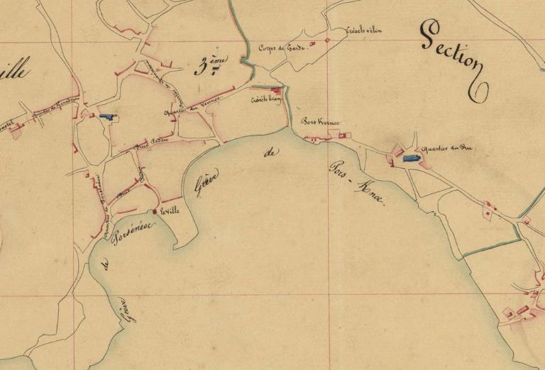 L'île de Batz et ses difficultés d'accès ainsi que son potentiel portuaire sont décrits par Jacques Cambry en 1794 :"Le canal de l'île est une excellente relâche pour tous les convois de la Manche. Ils n'y craignent que le vent d'ouest ; et s'il devient trop fort, ils peuvent se sauver dans la baie de Morlaix, susceptible de recevoir de très grands vaisseaux, mais dont la passe est fort étroite [...] Les vents d'est et d'ouest sont les plus favorables pour entrer dans ce canal, ou pour en sortir. Ceux qui règnent le plus habituellement dans ces parages courent du sud-ouest jusqu'au nord-ouest ; on les redoute. On pourrait aisément faire un port plus commode et plus sûr dans un beau bassin, de forme ronde, au sud de l'île. On appelle ce bassin le port Kernoc. Une jetée de cent brasses, bien maçonnée, bien faite de grands quartiers de pierres qu'on trouve sur la rive, produirait de 13 à 14 pieds d'eau dans la haute marée. Il pourrait recevoir des bâtiments de 150 à 200 tonneaux. Des capitaines qui fréquentent ce port et ceux du voisinage ont ouvert une souscription pour ce travail ; on en a déjà sollicité l’exécution près le gouvernement." (Voyage dans le Finistère, état du département en 1794, 1795).