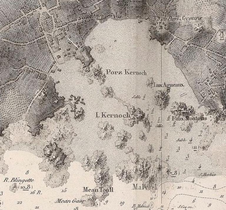 En 1828, l’ingénieur en Chef des Ponts et Chaussées, Guillaume Goury, dans ses Souvenirs polytechniques, un mémoire sur les ports de commerce du Finistère, décrit ainsi l'île-de-Batz et son port : « L’île de Batz est située au Nord-ouest du port de Roscoff, et n’en est séparée que par un canal ou passage d’environ 5 000 mètres de largeur. Cette île procure un abri aux bâtiments, qui peuvent mouiller entre elle et le continent. Son port, nommé Pors-Kernoc, n’a d’autre ouvrage d’art qu’une chaussée d’embarquement, à pierre sèche, construite récemment sur une longueur de 75 mètres, en face de Roscoff. Le mouillage intermédiaire et le port de Roscoff sont défendus par les feux croisés des batteries, des deux cotés."