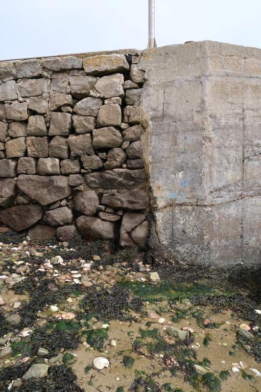 Cale maçonnée : 31.80 m de long ; 8.50m de large ; massif poids en maçonnerie ; plate-forme en béton armé sur l'ensemble de la cale ; parapet côté est de la cale maçonnée.