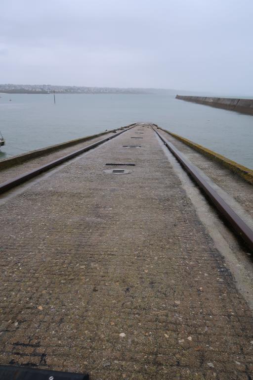 La cale SNSM a été construite entre 1949 et 1951 par l'entreprise Limousin pour accueillir l'abri du canot de sauvetage de la SNSM. D'une longueur initiale de 50m, la passerelle est aujourd'hui de 14m suite aux travaux d'aménagement du parking de la gare maritime.