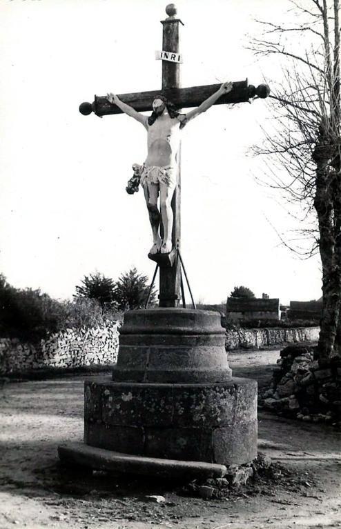 Cette croix monumentale, dite aussi croix de Rosco, porte sur son socle la date de 1885 et n’apparait pas sur le cadastre de 1837. Reconstruit en novembre 1979 par le sculpteur Stanis Godec de Pont-Croix, le croisillon était jusque-là en bois et portait, côté avers, un grand crucifix. (Aucune information sur la localisation actuelle de ce croisillon n’a été obtenue.)