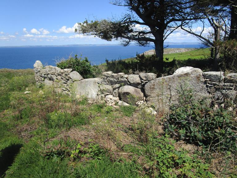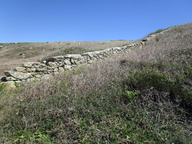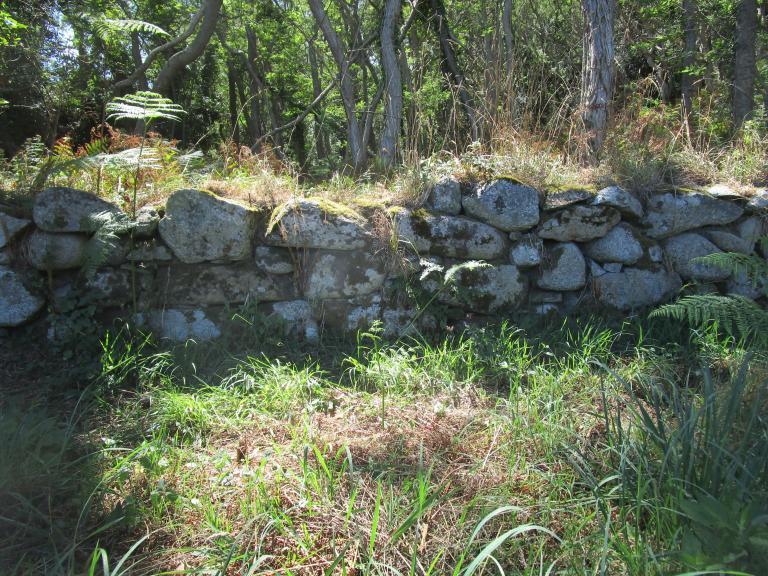 Certains murs du secteur, probablement plus anciens, correspondent tout de même à des limites de parcelles du début du 19e siècle. Parmi eux, un mur bien conservé axé nord-sud sépare les terres du village de Kervoazec à l’est et celles de Keriolet à l’ouest.