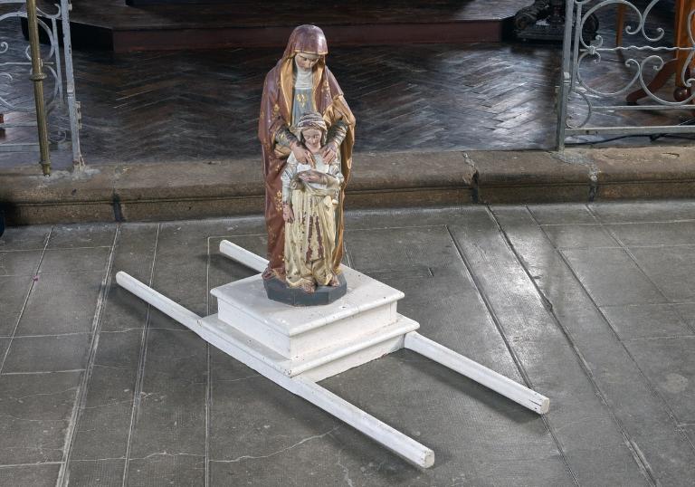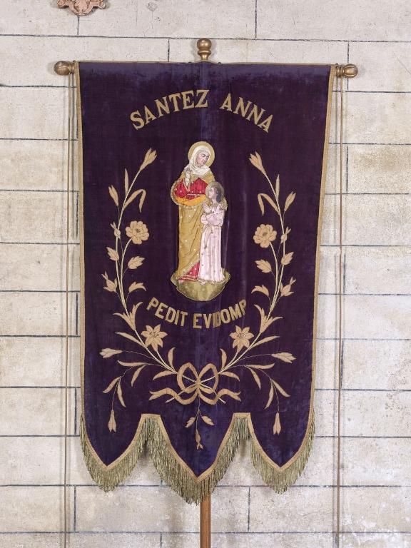 Deux reliquaires, dédiés à saint Tranquillin d’une part et à saint Victor et sainte Constance de l’autre, sont également conservés dans l’église paroissiale. Visibles sur des clichés qui représentent le pardon au 20e siècle, ils occupaient une place importante dans la procession : on faisait passer dessous des enfants ou des mères avec leurs bébés, selon une pratique qu’on retrouve ailleurs en Basse-Bretagne, comme sur le parcours de la troménie de Locronan. D’autres objets moins spécifiques et plus sériels témoignent également du pardon tel qu’il était pratiqué au 20e siècle : une statue en plâtre de sainte Anne et la Vierge, une autre de sainte Thérèse et deux bannières sur ces mêmes thèmes, autant d’éléments qui reflètent les cultes en vogue en Bretagne, comme dans le reste de la France, au tournant des 19e et 20e siècles. Enfin, trois manteaux sont présentés dans la chapelle, illustrant une pratique ancienne mais qui s'est maintenue jusqu'en 2016, consistant à habiller la statue de procession le jour du pardon.