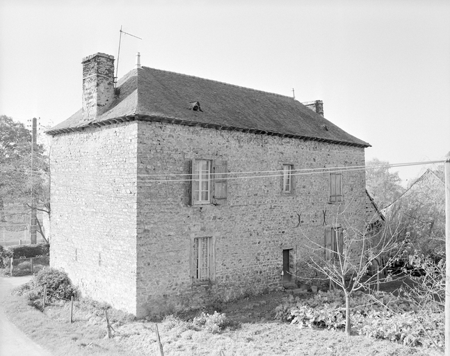 Maison en moellons de grès, entourage des baies en granite, souche en schiste, linteaux de la façade nord et corniche en bois ; logis et parties agricoles en appareil mixte de grès et poudingue.