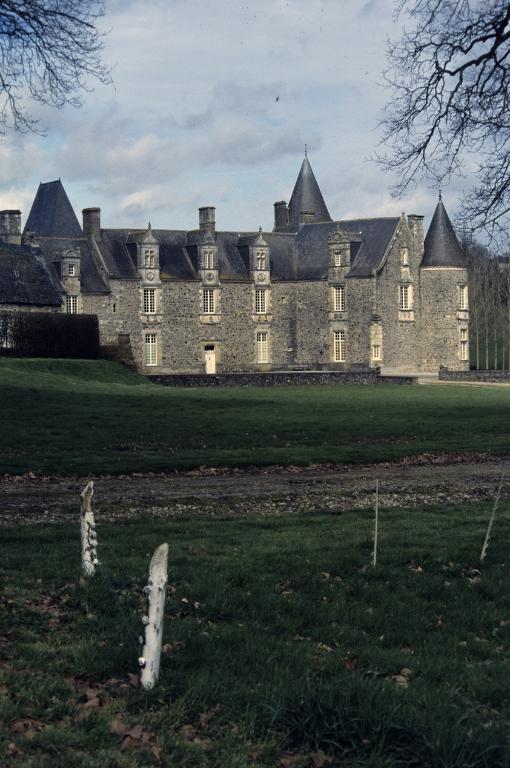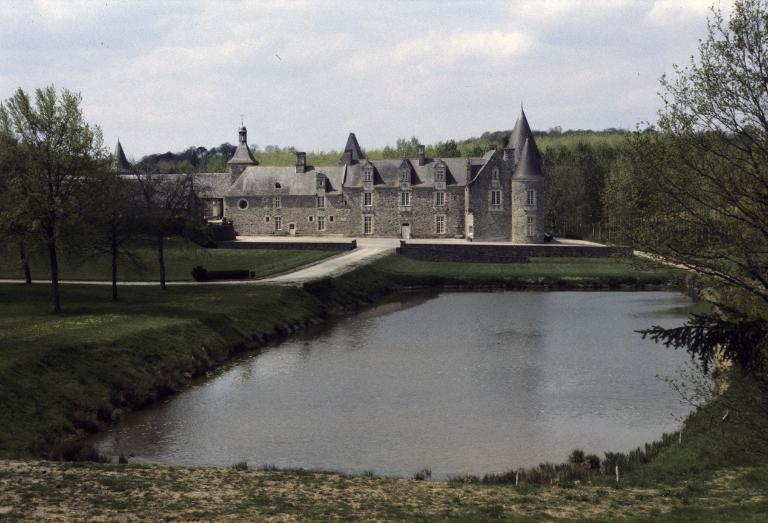 L'ancien manoir est attesté en 1350, en contre-bas des logis actuels et visible sur le cadastre de 1824 détruit au 19e siècle. Le château actuel a été commencé à la limite des 15e-16e siècles pour la famille Hay et terminé vers 1580. Vers 1860, importante campagne de travaux par l'architecte rennais Jacques Mellet : ajout de 3 tours cylindriques à l'aile sud, d'une tourelle en surplomb au milieu de la façade principale, reconstruction de la tour à l'angle nord-ouest. Vers 1890, la chapelle est entièrement redécorée par le peintre rennais Jobbé-Duval. Avant 1940, suppression de la tourelle en surplomb et de la tour dans l'angle ; vers 1950, suppression de la tour de l'angle sud-est, reprise du pignon avec remontage de la cheminée provenant du manoir de La Goderie à Erbrée et suppression de l'enduit.