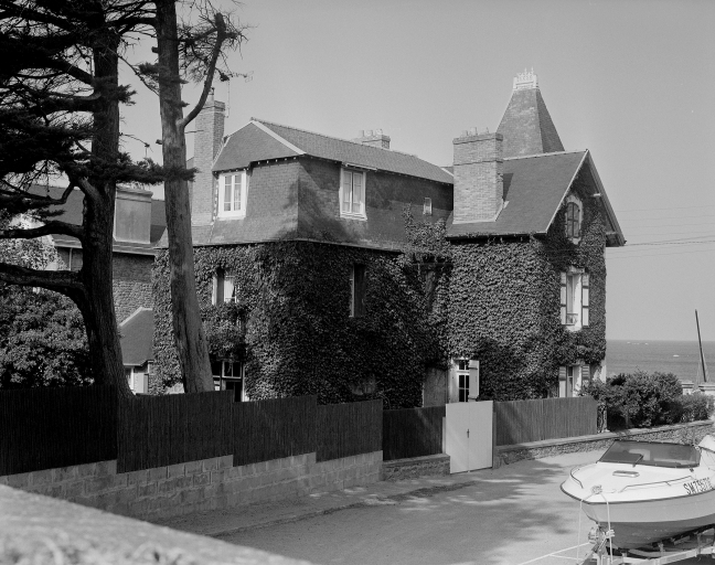 Maison de villégiature construite en front de mer en 1891 à Rothéneuf, sur un terrain appartenant à la famille Surcouf. La villa est l'une des premières villas construites aux abords de la plage du Val, sur un terrain délimité par un entrepreneur de Paramé, Maloisel. La villa ne comprenant pas de dépendance, les domestiques sont logés à l'étage de comble. En 1931, la serre et le salon de musique de la façade sud sont démolis et remplacés par une aile comprenant un étage carré et un étage de comble. Le vitrail de la baie nord du salon représentant des iris n'existe plus.