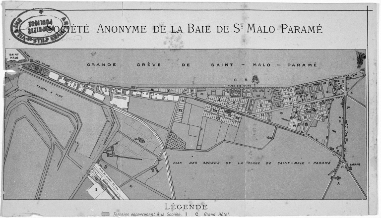 En 1875, un notaire de Saint-Malo effectue la vente de la propriété Beaurivage, comprenant les terrains dunaires à bâtir du littoral nord des communes de Saint-Malo et Paramé. La propriété qui appartenait à MM. Dejean et Cahours fait l'objet d'une vente de liquidation judiciaire, les huit hectares étant vendus au prix de 90 600 francs. C'est un banquier parisien originaire de Normandie, Edouard Hébert, qui hérite des terrains de Beaurivage en paiement de la dette de ses deux créditeurs. Charmé par le site occupé seulement par quelques moulins lors d'une visite en 1880, Hébert décide de lancer une opération immobilière pour transformer le site en une station balnéaire. En 1881, il forme avec des amis parisiens une société anonyme pour trente ans, dite Société anonyme de la Baie de Saint-Malo-Paramé. Cette société, dont les principaux actionnaires sont des banquiers (Hébert, Desfossés), des négociants (Prévet, Suzanne) ou des artistes (Périvier, De Grave, Bertrand) a pour objet principal : la vente des terrains de Paramé et Saint-Malo, l'acquisition, l'édification et l'affermage d'un casino et d'un grand hôtel, et toute entreprise qui pourrait contribuer au développement du site. Le capital de départ est d'un million de francs, et le conseil d'administration se réunit au moins une fois par mois au siège à Paris. Le plan de lotissement daté de 1881 est attribué à l'architecte Pouliquen. Entre 1881 et 1885, le Grand Hôtel et le casino sont édifiés le long de la digue de Paramé, alors encore en construction depuis les terrains Palmié en Saint-Malo. Le prolongement de la digue est souhaitable pour la station. En 1881, M. Hébert, propriétaire depuis 1880 des anciens terrains de la minoterie à l'est de l'épi de la Hoguette, s'engage à céder le terrain nécessaire, à charge pour l'Etat de prolonger la digue et de l'entretenir. En outre, en 1888, MM. Hébert et Périvier contractent une promesse de cession gratuite à l'Etat des terrains Palmié dont ils étaient propriétaires depuis 1882, afin de reconstruire la tranche manquante de 278 mètres. En 1881, Hébert demande une concession à la commune de la voie appelée chemin des Mielles. La concession lui est refusée et le boulevard central du lotissement reste une voie privée jusqu'en 1893. Entre 1880 et 1911, le littoral des communes de Saint-Malo est couvert par 700 maisons de villégiature et une cinquantaine d'hôtels et pensions de famille. Les parcelles achetées par des actionnaires parisiens sont construites puis revendues ou louées. L'urbanisation se fait le long de voies suivant un plan en damier. En raison de difficultés financières, la société est dissoute en 1885 et les parts revendues au gérant du casino, M. Bias.