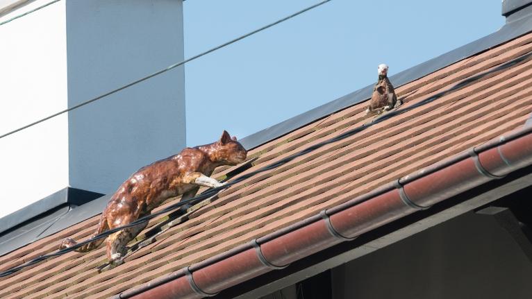 Sujet : croix de saint-andré, support : façades ; sujet : chat en poterie poursuivant un oiseau, support : toiture ; sujet : décor géométrique en mosaïque, support : salle-de-bain.