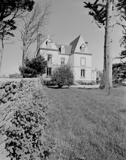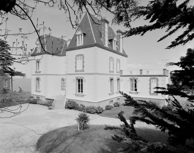Maison de style malouinière construite en front de mer avec vue sur la Manche et la ville historique de Saint-Malo. Gros oeuvre du logis enduit. Encadrements des baies et bandeau horizontal en brique. Forte pente de la couverture composée d'une toiture à longs pans encadrée de deux pavillons. Une pièce plus basse, en saillie latérale, est couverte d'une terrasse. Bow-window sur mer. Les communs plus à l'ouest de la parcelle s'apparentent au style chalet avec faux pan de bois en partie haute.