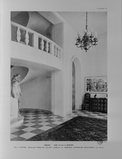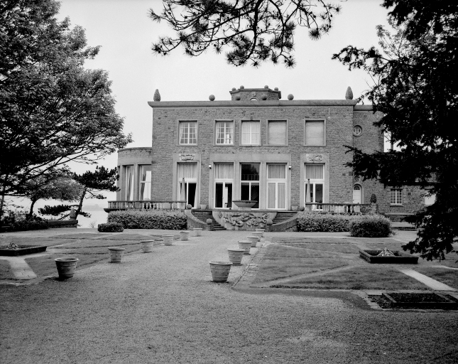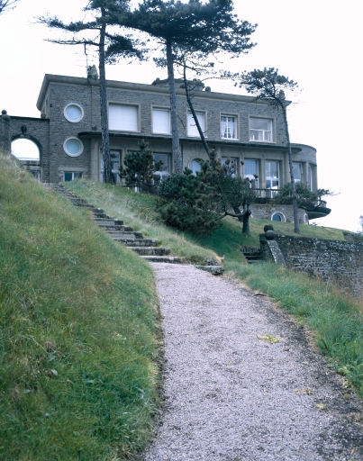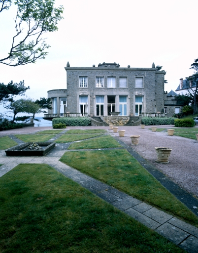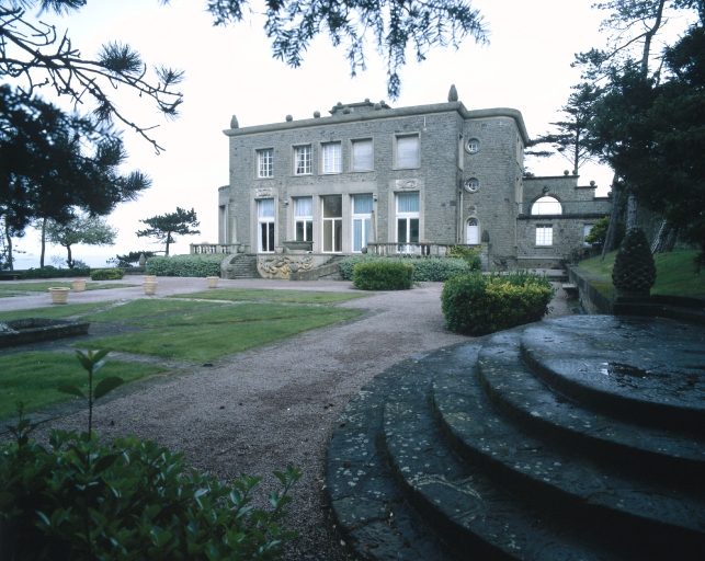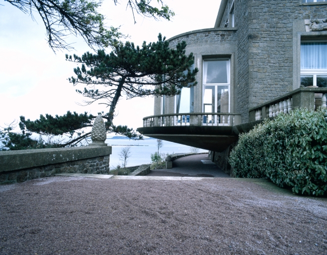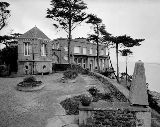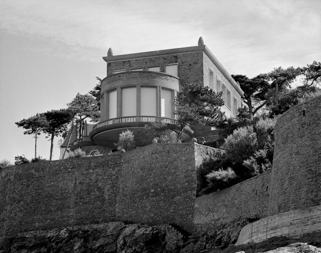 En 1938, après nombre de commandes publiques, Michel Roux-Spitz conçoit à Dinard sa propre villa. Il l´habitera jusqu´à sa mort en 1957. L´unicité de cette œuvre exceptionnelle pose encore question dans sa brillante carrière, tant elle se distingue de ses réalisations précédentes. Il abandonne ici les surfaces blanches et lisses employées dans ses immeubles parisiens, pour une construction en moellons équarris de granite et pierre reconstituée, mieux intégrée au site. Le maintien de l´appellation Greystones, qui provient de l´ancienne villa élevée à cet emplacement, y fait indéniablement référence. De cette ancienne construction, il gardera d´autres éléments, enceinte et gloriette du bassin de Neptune, pour la composition de son jardin. Testament architectural de l´auteur, cette belle demeure est à la fois un havre de paix tourné vers l´intérieur et une citadelle face à la mer. Le porte-à-faux du grand salon fait figure de proue et renvoie à l´architecture navale, aux voyages au long cours. Elle marque également un retour vers un nouveau classicisme architectural, un besoin d´ordre, nourri de références savantes. La maison et le jardin forment un tout. Les escarpements de la parcelle, loin d´être un désavantage en deviennent un attrait essentiel. Il en utilise les moindres reliefs et souligne les pentes par des emmarchements de manière à donner une logique et une fonction à ce qui n´était qu´un simple accident. Le parterre dessiné comme un jardin à la française en conjugue tous les éléments, le minéral, le végétal et l´eau. Cette recherche de composition idéale est adjointe d´un décor, allégorie de la mer, sculpté par Alfred Jeanniot qui expose à l´exposition internationale de Paris en 1937.