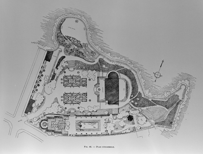 Parties constituantes non étudiéesjardin, bassin, fabrique de jardin, terrasse en terre-plein, conciergerie, enclos