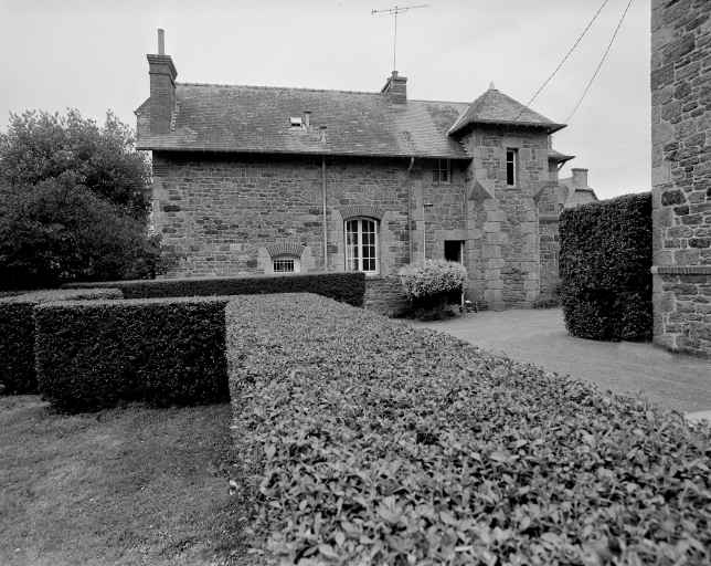 Maison de taille moyenne en maçonnerie de granite avec éléments rapportés en bois tels que les balcons, les garde-corps et les rampes des escaliers extérieurs. Double entrée, l'une en façade antérieure abritée par un porche, l'autre en façade latérale. Façade principale à décrochement, pignon en façade à demi-croupe et aisseliers décoratifs. Encadrement des baies et chaînages d'angle en granite et brique. Communs situés à l'est avec logement secondaire et garage.