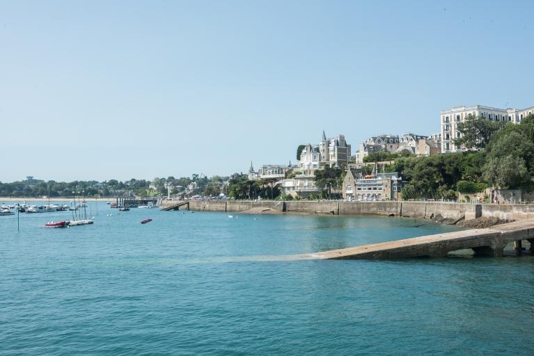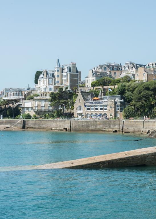 Le yacht-club est construit en 1932 par l'architecte Yves Hémar ; la salle du premier étage était décorée de fresques de Jacques Boullaire. Cet établissement réunit plusieurs clubs dont le club nautique de la Rance fondé en 1918. Une société nautique plus ancienne était mentionnée à Dinard dès 1873 avec pour président le duc d'Audiffret-Pasquier et pour vice-président le comte de Mortemart.