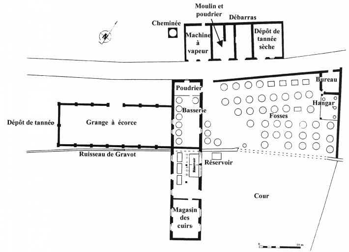 Parties constituantes non étudiéesatelier de fabrication, entrepôt industriel, bureau, séchoir à peaux, magasin industriel, transformateur, moulin à tan