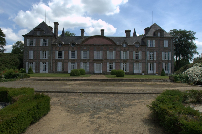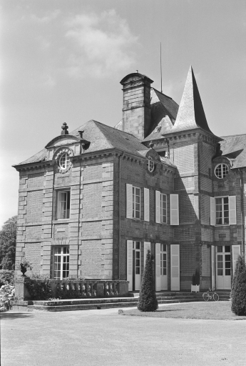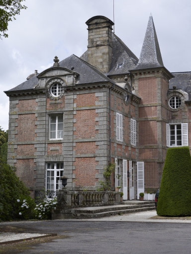 De plan rectangulaire, le château est de style Louis XIII. Il est élevé dans les même matériaux que les bâtiments de dépendance : en brique avec encadrements des baies, bandeaux, chaînes d'angles et motifs en pierre. Il présente un plan en U formé d'un corps de bâtiment longitudinal flanqué d'un avant-corps central et encadré de deux ailes en retour d'équerre avec tour carrée demi-hors-oeuvre dans l'angle, couverte d'un toit en pavillon. A un étage carré et un étage de comble percé d'oculi, ce château est couvert d'un toit à croupes en ardoises. L'ensemble est situé dans un cadre verdoyant. L'entrée, marquée par un grand portail en fer forgé encadré de deux piliers en granite, est flanquée de la conciergerie, petit bâtiment de plan centré polygonal, construit en brique avec chaînes d'angles et encadrements des baies en pierres de taille en granite. Les différents pans du bâtiment sont percés alternativement de portes-fenêtres et d'oculi. La conciergerie, à un étage de comble, est couverte d'un toit à l'impériale en ardoise posée en écaille. Un fronton curviligne, supporté par deux colonnes, surmonte la porte d'entrée. Les ateliers de fabrication, anciennes écuries, se situent dans un très long bâtiment construit en brique et composé de trois corps au même droit. Ce bâtiment présente un rez-de-chaussée et un étage de comble couvert d'un toit à longs pans en ardoise. Les chaînes d'angles, les encadrements des baies, un cordon régnant sur l'ensemble de la façade, ainsi que le niveau de soubassement sont en pierre de taille en granite gris. Le corps de bâtiment central, percé d'arcades, est flanqué de deux corps latéraux percés chacun d'un triplet : une porte en plein cintre encadrée de fenêtres (également en plein cintre) surmontées d'une plate-bande. Les ateliers plus récents, situés à l'arrière du château, sont construits en parpaing de béton recouvert d'un essentage de tôle.