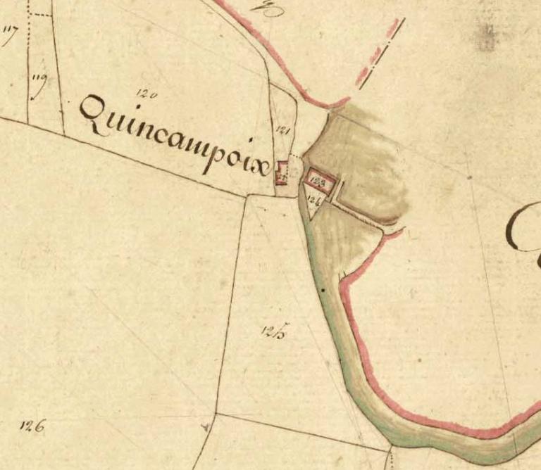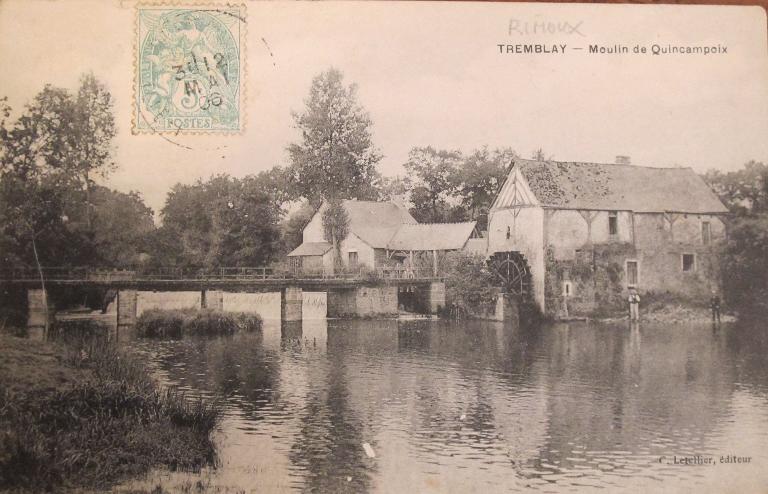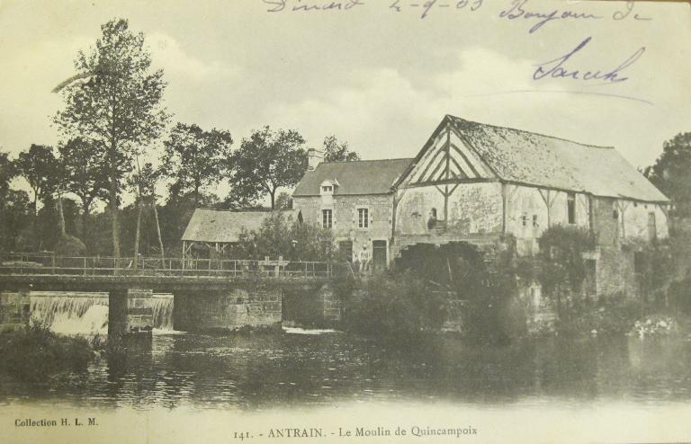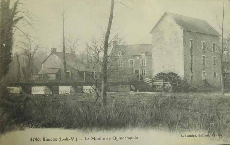 Privé de ses deux roues actionnées par le Couësnon, ce moulin est reconstruit à plusieurs reprises puisque le premier date de 1655 et le second de 1797. Il porte un nom donné à plus de 80 moulins en France, celui de Quincampoix. Ce nom semble provenir de « qui qu'en poist », qui signifie « à qui que ce soit désagréable », mots que les meuniers étaient censés prononcer en réponse aux récriminations de leurs pourvoyeurs mécontents.