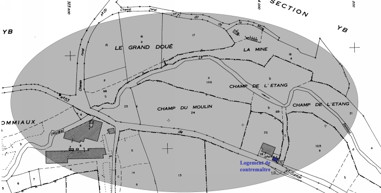 Mine du Semnon, plan d'ensemble, AD Ille-et-Vilaine 8S 24. Fonds préfecture, mines et carrières, Martigné-Ferchaud (2 juillet 1919).