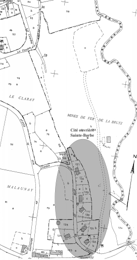 Parties constituantes non étudiéesatelier de fabrication, centrale électrique, cité ouvrière, cantine, laboratoire, voie ferrée, puits d'aérage, puits d'extraction, galerie maçonnée
