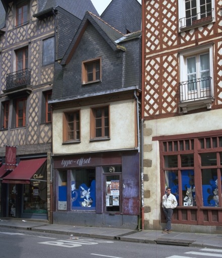 L'imprimerie forme l'angle de deux rues où se situe, au rez-de-chaussée, le magasin industriel éclairé par deux vitrines quadrillées de larges poutres et poteaux (éléments porteurs). Le rez-de-chaussée, recouvert d'enduit partiel, est marqué par des chaînes d'angle harpées en granite. Les niveaux supérieurs, entièrement en pan de bois, sont percés, sur leur façade, d'une travée de fenêtres. Le comble à surcroît, éclairé par une lucarne-pignon, est couvert d'un toit à croupes en ardoises. En 1971, l'imprimerie couvre une superficie totale de 185 m2.