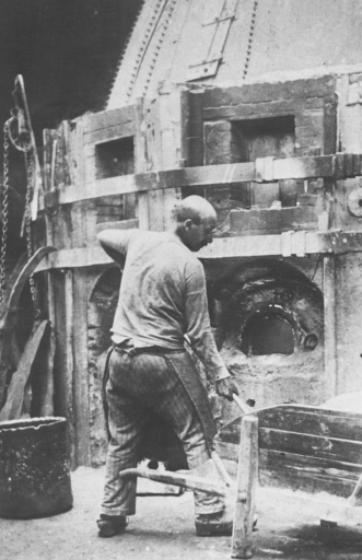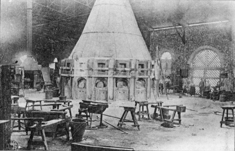 Halle de fabrication de la verrerie, vues intérieures, La Cristallerie de Haute-Bretagne à Fougères. Ar Men, 1987, 8.