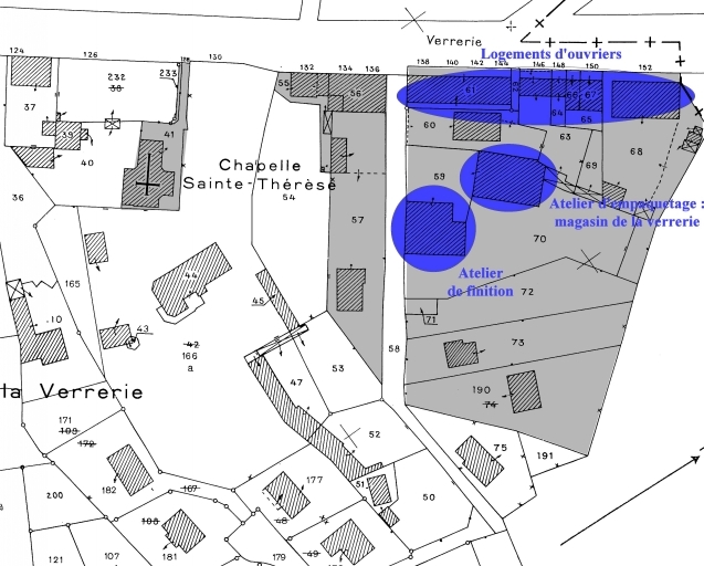 Parties constituantes non étudiéesatelier de fabrication, cité ouvrière, chapelle, bureau