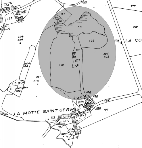 Site dont il ne subsiste que quelques vestiges de deux fours à chaux enfouis dans la végétation, implantés sur les terrains de la ferme de la Motte Saint-Gervais.