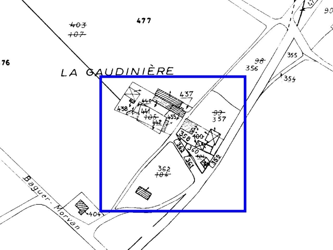 Plan cadastral rénové, commune de Baguer-Morvan, section A, feuille 1, 1/2500e, 1982.