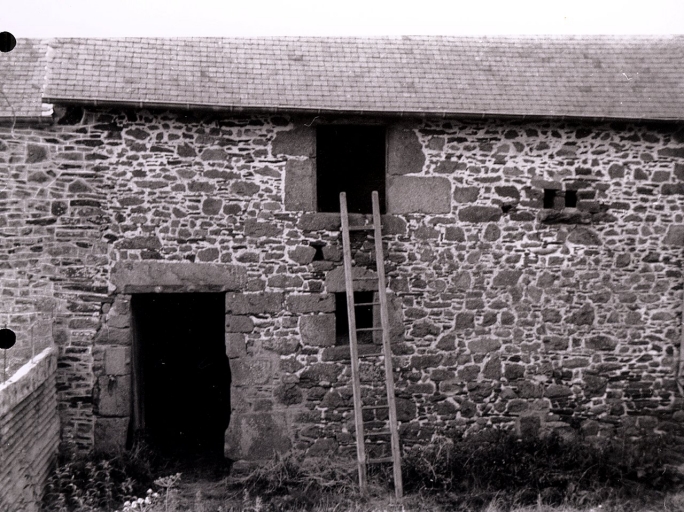Disposition : en alignement Plan/structure : massé, grenier, pièce unique Niveaux : comble à surcroît Elévations : travée : fenêtre gerbière Formes des baies : linteau droit (granite) Typologie 1996 : I.