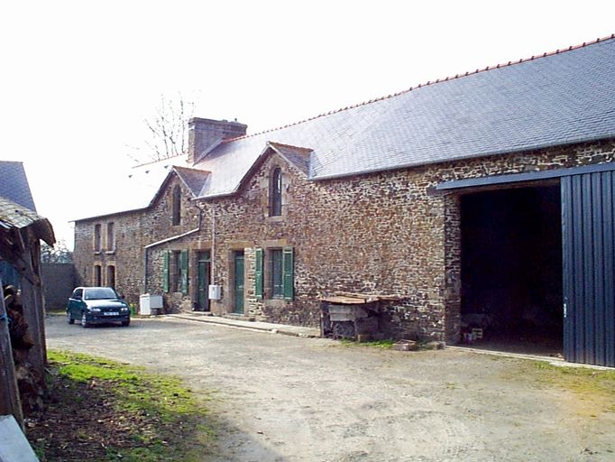Ferme disposant d'un logis double du milieu du 19e siècle s'élevant sur des structures plus anciennes en remploi ; modèle comparable par la présence des gerbières formant pignon aux fermes du département voisin de la Manche.