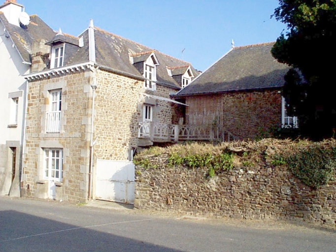 Anciennement maison à boutique(?) implantée perpendiculairement à la rue et adossée à sa voisine. Le traitement en croupe de la toiture lui donne une dimension peu commune dans le village.