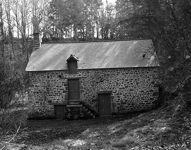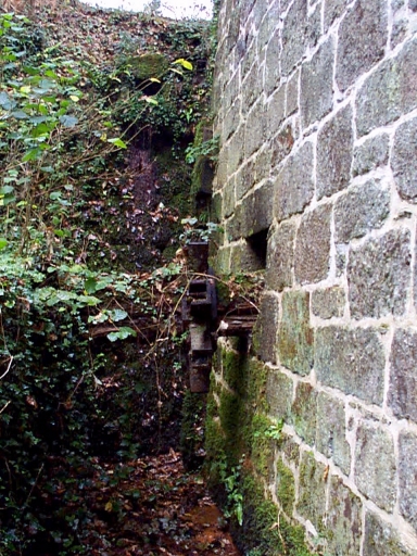 Moulin à eau déclassé conservant dans les parties basses les pierres de taille d'une première construction probalement remaniée au cours du 19e siècle. Lambeaux de roue.