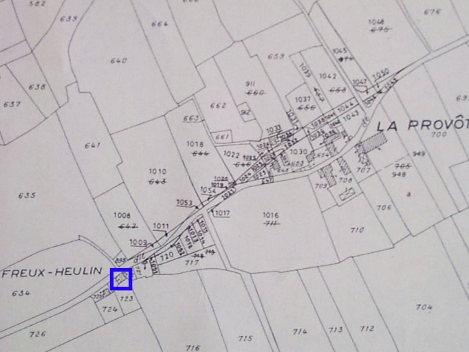 Logis élémentaire figurant sur l'ancien cadastre à la pointe d'une curieuse parcelle triangulaire.