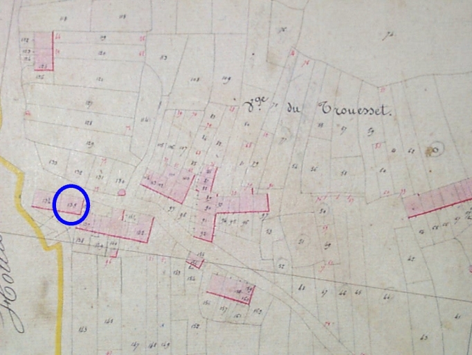 Desservie par son environnement, ce logis de ferme présente un mode de construction et un parti caractéristiques de la strate la plus ancienne de l'habitat rural de la commune. Le fort volume de l'édifice se découvre côté rue car sa façade sur cour est partiellement masqué par un autre bâtiment contemporain. Cette disposition laisserait croire qu'une seule pièce occupe le premier niveau - une salle munie d'une cheminée - alors que le petit jour percé dans le mur gouttereau postérieur trahit l'existence d'un cellier à l'est. Noter les petites dimensions de la fenêtre sud, ainsi que le palâtre taillé dans une branche courbe de la porte postérieure. Les murs où le grès domine, sont montés ça et là en assises alternées avec des schistes pourprés que l'on retrouve sur la souche de cheminée.